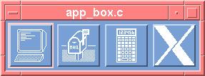 /* Written by Dan Heller and Paula Ferguson. * Copyright 1994, O'Reilly & Associates, Inc. * Permission to use, copy, and modify this program without * restriction is hereby granted, as long as this copyright * notice appears in each copy of the program source code. * This program is freely distributable without licensing fees and * is provided without guarantee or warrantee expressed or implied. * This program is -not- in the public domain. */ /* app_box.c -- make an array of DrawnButtons that, when activated, * executes a program. When the program is running, the drawn button * associated with the program is insensitive. When the program dies, * reactivate the button so the user can select it again. */ #include <Xm/DrawnB.h> #include <Xm/RowColumn.h> #include#ifndef SYSV #include #else #define SIGCHLD SIGCLD #endif /* SYSV */ #define MAIL_PROG "/bin/mail" typedef struct { Widget drawn_w; char *pixmap_file; char *exec_argv[6]; /* 6 is arbitrary, but big enough */ int pid; } ExecItem; ExecItem prog_list[] = { { NULL, "terminal", { "xterm", NULL }, 0 }, { NULL, "flagup", { "xterm", "-e", MAIL_PROG, NULL }, 0 }, { NULL, "calculator", { "xcalc", NULL }, 0 }, { NULL, "xlogo64", { "foo", NULL }, 0 } }; XtAppContext app; /* application context for the whole program */ GC gc; /* used to render pixmaps in the widgets */ void reset(int), reset_btn(), redraw_button(), exec_prog(); main(argc, argv) int argc; char *argv[]; { Widget toplevel, rowcol; Pixmap pixmap; Pixel fg, bg; int i; /* we want to be notified when child programs die */ signal (SIGCHLD, reset); XtSetLanguageProc (NULL, NULL, NULL); toplevel = XtVaAppInitialize (&app, "Demos", NULL, 0, &argc, argv, NULL, NULL); rowcol = XtVaCreateWidget ("rowcol", xmRowColumnWidgetClass, toplevel, XmNorientation, XmHORIZONTAL, NULL); /* get the foreground and background colors of the rowcol * so the gc (DrawnButtons) will use them to render pixmaps. */ XtVaGetValues (rowcol, XmNforeground, &fg, XmNbackground, &bg, NULL); gc = XCreateGC (XtDisplay (rowcol), RootWindowOfScreen (XtScreen (rowcol)), NULL, 0); XSetForeground (XtDisplay (rowcol), gc, fg); XSetBackground (XtDisplay (rowcol), gc, bg); for (i = 0; i < XtNumber (prog_list); i++) { /* the pixmap is taken from the name given in the structure */ pixmap = XmGetPixmap (XtScreen (rowcol), prog_list[i].pixmap_file, fg, bg); /* Create a drawn button 64x64 (arbitrary, but sufficient) * shadowType has no effect till pushButtonEnabled is false. */ prog_list[i].drawn_w = XtVaCreateManagedWidget ("dbutton", xmDrawnButtonWidgetClass, rowcol, XmNwidth, 64, XmNheight, 64, XmNpushButtonEnabled, True, XmNshadowType, XmSHADOW_ETCHED_OUT, NULL); /* if this button is selected, execute the program */ XtAddCallback (prog_list[i].drawn_w, XmNactivateCallback, exec_prog, &prog_list[i]); /* when the resize and expose events come, redraw pixmap */ XtAddCallback (prog_list[i].drawn_w, XmNexposeCallback, redraw_button, (XtPointer)pixmap); XtAddCallback (prog_list[i].drawn_w, XmNresizeCallback, redraw_button, (XtPointer)pixmap); } XtManageChild (rowcol); XtRealizeWidget (toplevel); XtAppMainLoop (app); } /* redraw_button() -- draws the pixmap into its DrawnButton * using the global GC. Get the width and height of the pixmap * being used so we can either center it in the button or clip it. */ void redraw_button(button, client_data, call_data) Widget button; XtPointer client_data; XtPointer call_data; { Pixmap pixmap = (Pixmap) client_data; XmDrawnButtonCallbackStruct *cbs = (XmDrawnButtonCallbackStruct *) call_data; int srcx, srcy, destx, desty, pix_w, pix_h; int drawsize, border; Dimension bdr_w, w_width, w_height; short hlthick, shthick; Window root; /* get width and height of the pixmap. don't use srcx and root */ XGetGeometry (XtDisplay (button), pixmap, &root, &srcx, &srcx, &pix_w, &pix_h, &srcx, &srcx); /* get the values of all the resources that affect the entire * geometry of the button. */ XtVaGetValues (button, XmNwidth, &w_width, XmNheight, &w_height, XmNborderWidth, &bdr_w, XmNhighlightThickness, &hlthick, XmNshadowThickness, &shthick, NULL); /* calculate available drawing area, width 1st */ border = bdr_w + hlthick + shthick; /* if window is bigger than pixmap, center it; else clip pixmap */ drawsize = w_width - 2 * border; if (drawsize > pix_w) { srcx = 0; destx = (drawsize - pix_w) / 2 + border; } else { srcx = (pix_w - drawsize) / 2; pix_w = drawsize; destx = border; } drawsize = w_height - 2 * border; if (drawsize > pix_h) { srcy = 0; desty = (drawsize - pix_h) / 2 + border; } else { srcy = (pix_h - drawsize) / 2; pix_h = drawsize; desty = border; } XCopyArea (XtDisplay (button), pixmap, cbs->window, gc, srcx, srcy, pix_w, pix_h, destx, desty); } /* exec_proc() -- the button has been pressed; fork() and call * execvp() to start up the program. If the fork or the execvp * fails (program not found?), the sigchld catcher will get it * and clean up. If the program is successful, set the button's * sensitivity to False (to prevent the user from execing again) * and set pushButtonEnabled to False to allow shadowType to work. */ void exec_prog(drawn_w, client_data, call_data) Widget drawn_w; XtPointer client_data; XtPointer call_data; { ExecItem *program = (ExecItem *) client_data; XmDrawnButtonCallbackStruct *cbs = (XmDrawnButtonCallbackStruct *) call_data; switch (program->pid = fork ()) { case 0: /* child */ execvp (program->exec_argv[0], program->exec_argv); perror (program->exec_argv[0]); /* command not found? */ _exit (255); case -1: printf ("fork() failed.\n"); } /* The child is off executing program... parent continues */ if (program->pid > 0) { XtVaSetValues (drawn_w, XmNpushButtonEnabled, False, NULL); XtSetSensitive (drawn_w, False); } } /* reset() -- a program died, so find out which one it was and * reset its corresponding DrawnButton widget so it can be reselected */ void reset(dummy) int dummy; { int pid, i; #if defined(SYSV) || defined(_CH_) int status; #else union wait status; #endif /* SYSV */ pr